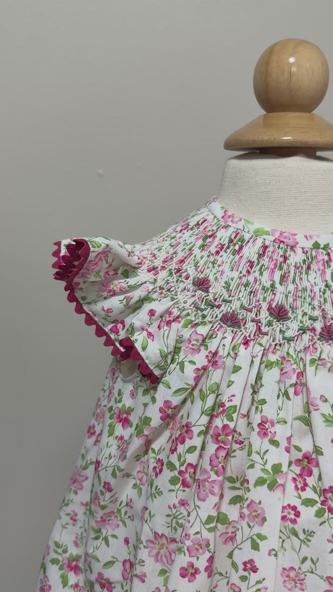 Pink floral hand smocking on collar