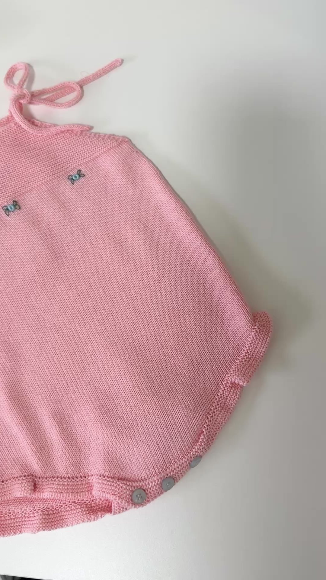 Description: Knitted in a soft cotton blend, the shortie features a floral embroidered pattern, with knitted ties on the shoulder and buttons between the legs. It comes with the floral shirt with ruffled collar.